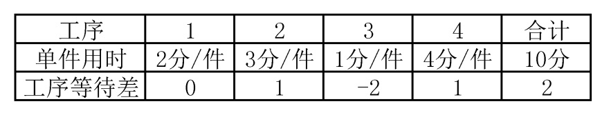 工序总用时=第一件总用时+第2件累计时间=单件总用时+(第一道工序用时+工序累计等待时差)