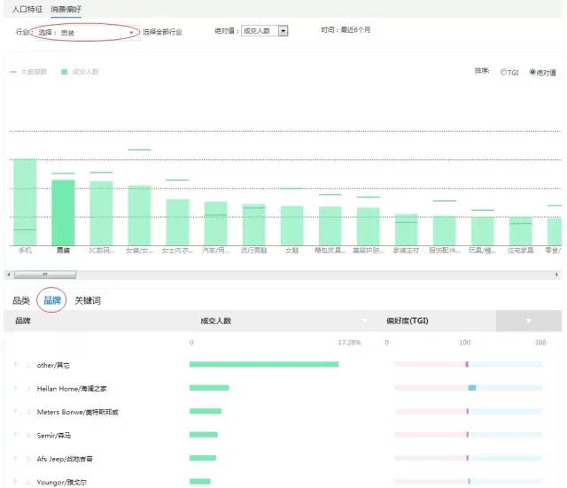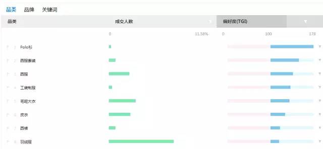 上面这张信息图,有两个数据指标,一个是人数占比,一个是TGI(喜好度)。