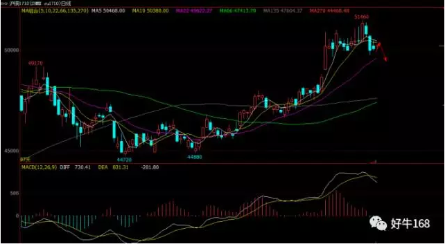从日线图来看,沪铜昨日价格整体运行在五日均线以下,但是我们可以看到价格对五日均线做了一次修正,而五日均线进一步下移,下方22日均线支撑又是进一步向上的,所以料想短期内价格难以去突破这样的震荡格局,所以建议早间建议50000附近布局多单,止损49900,止盈50500.50500附近布局空单,止损50550,止盈50100。