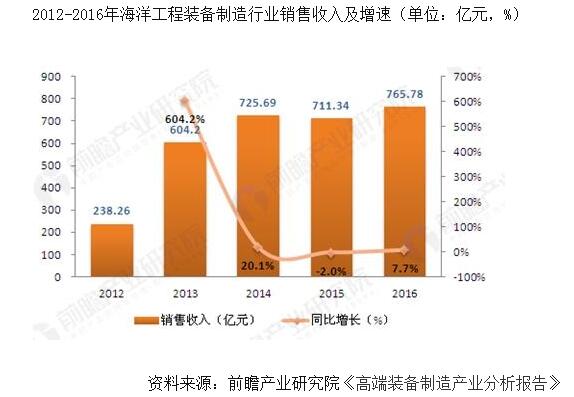譬如,近几年来,我国海洋工程装备制造业取得了长足进步,特别是海洋油气开发装备具备较好发展基础。我国已基本实现浅水油气装备的自主设计建造,部分海洋工程船舶形成品牌,深海装备制造取得一定突破。2016年,海洋工程装备行业完成主营业务收入765.78亿元,同比增长7.7%。