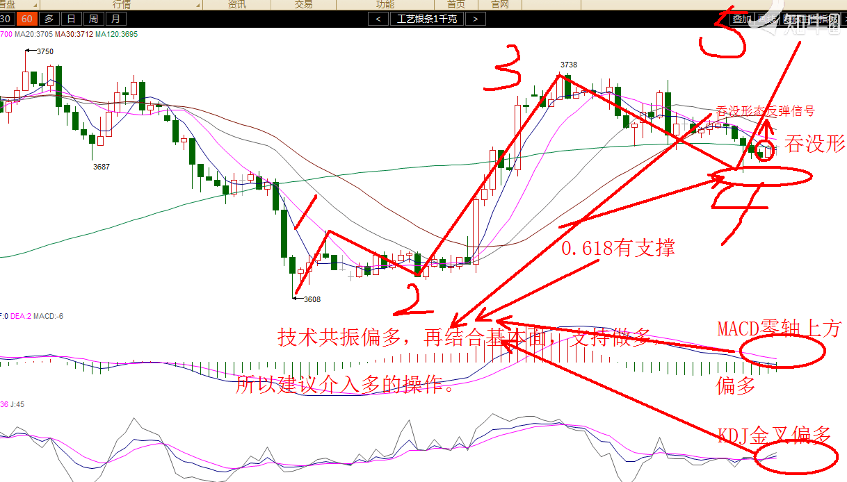 建议:工艺银3695-3685区域参入多单,目标3730-3750区域,止损区域3665-3655。