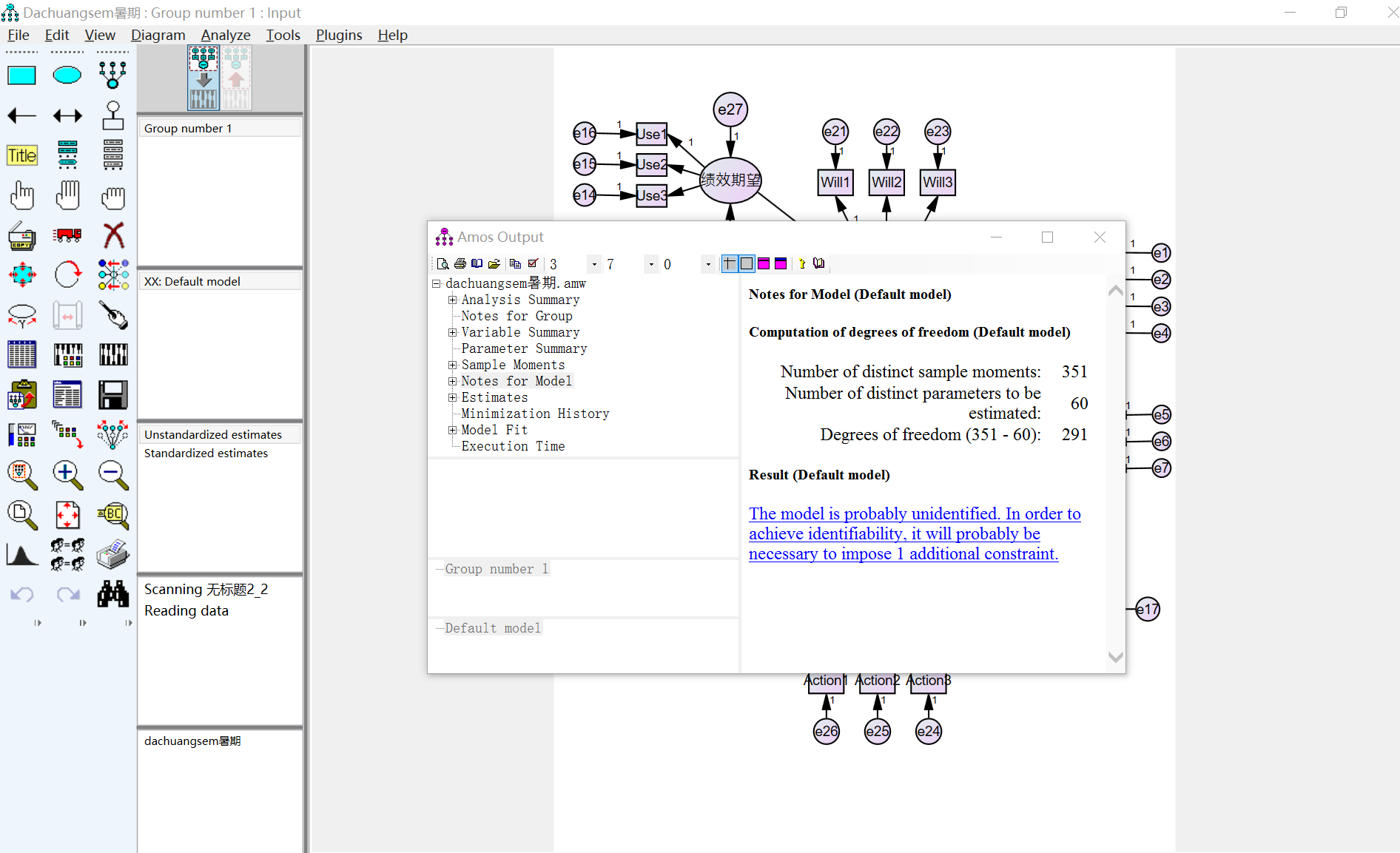 请问问题怎么解决的呢?The model is probably unidentified. In order to achieve identifiability, it will probably be necessary to impose 5 additional constraints.不知道哪里存在问题??