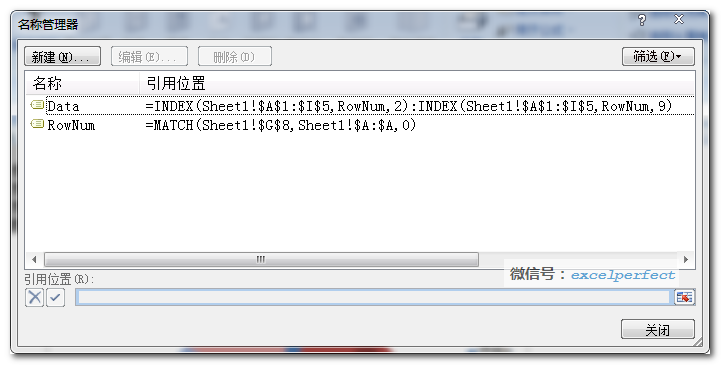 名称定义完成后的“名称管理器”对话框如下图所示:
