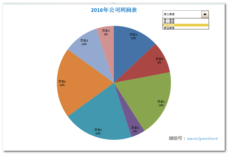 现在,在组合框中选择相应的项目,饼图会自动调整。