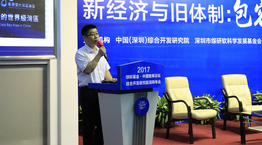 2017年8月9日下午,主题为“新经济与旧制度”的2017综研基金·中国智库论坛暨综合开发研究院深圳年会在深圳举行,中国(深圳)综合开发研究院课题研究小组及中科院先进技术研究院、阿里研究院与华大基因等研究机构与企业代表出席并参与讨论。
