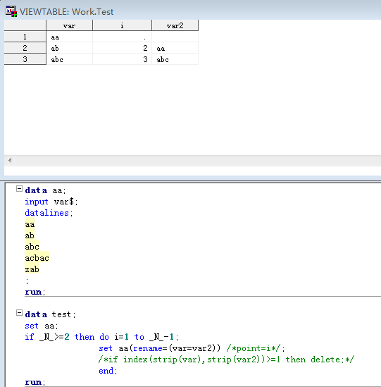 _N_=3, PDV 3 abc 2 aa if 为真,进入循环
