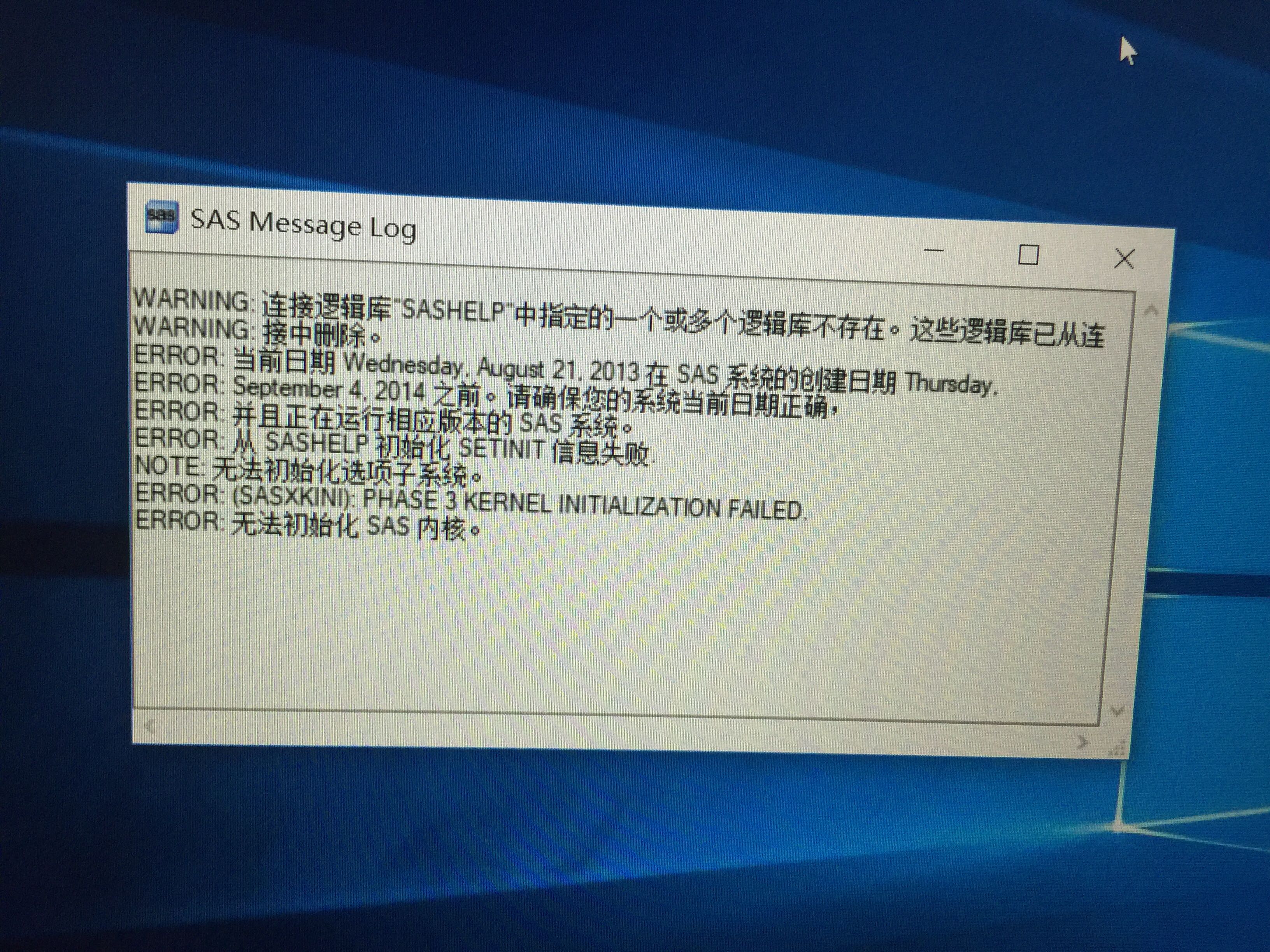 Win10安装64位sas,论坛中下载的软件包,sid2014年的,时间改了,但是还是不能运行。