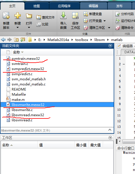 这里看左侧当前文件夹,不用管找不到svmpredict.exp,svmtrain.exp这些内容。