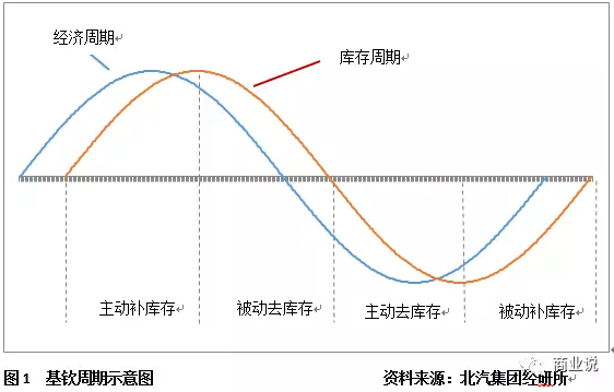 库存周期又称基钦周期,由英国经济学家约瑟夫•基钦于1923年提出,为一种3-4年的短波周期,由经济预期驱动,以存货的形式体现。通常在一轮经济周期底部复苏期,随着需求回升,经济转暖,市场对产品的需求增加,企业库存开始逐渐减少,进入被动去库存周期;之后,随着经济进一步增加,企业观察到市场的好转,开始增加生产,库存增加,进入主动补库存周期;再之后,由于企业生产过多,超过市场需求,企业库存在供求差异下被动累计,进入被动补库存周期;而随着库存累计的增加,企业观察到市场的疲软,开始主动减少生产,从而进入主动去库存周期。由此,经济完成从萧条到繁荣再到萧条的一个完整周期。