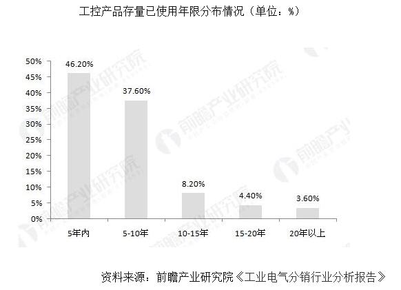 此外,除了工业电气产品的现有需求外,中国工业电气经过多年的发展,已积累了一定的存量规模。以工业自动化为例,2014年现存的自动化产品中,使用年龄10年以内的居多,5-10年和5年以内分别占37.60%和46.20%。