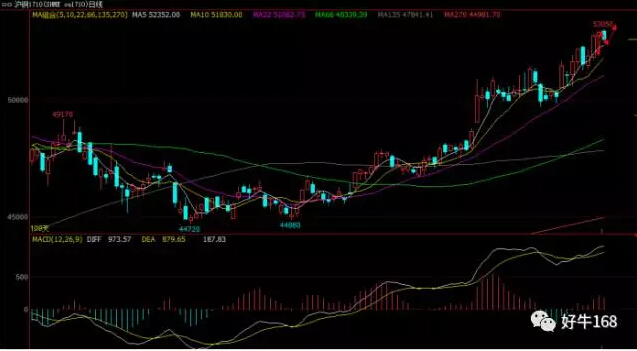 从日线图来看,沪铜价格整体运行在5日与10日均线之间价格多头是非常强势的,而昨日价格给到的最低点的回撤也在66日均线附近,此点位支撑非常强劲,价格在此前几波上涨的途中最大的回撤也并未将66日均线击穿,那么在日内而言价格回撤至66日均线位附近可以考虑布局多单。而日线当中,价格整体运行在10日均线之上,多头力量非常强势,今日建议52150附近布局多单,止损52100,止盈52700.52900附近布局空单,止损53000,止盈52200。