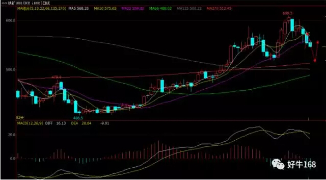 从日线图来看,昨日铁矿价格反抽到五日均线附近随后开始回落,三十分钟图中可以看到价格晚间开盘后进一步的走弱,而日线当中的乖离较大,所以若是早间形成进一步的下跌之后,可以博一次短多,当然需要次级别的配合,次级别当中有部分的反弹需求即可进场多单,比方说底分型,比方说十字星之后走阳线,都可以在后面的回撤途中带小止损去布局多单。日内建议:540附近可以布局多单,止损543,止盈560;在565附近考虑布局空单,止损568,止盈550。