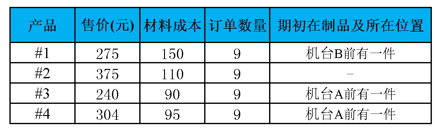 产品价格、成本、订单数量与在制品的位置(如表6-8所示):