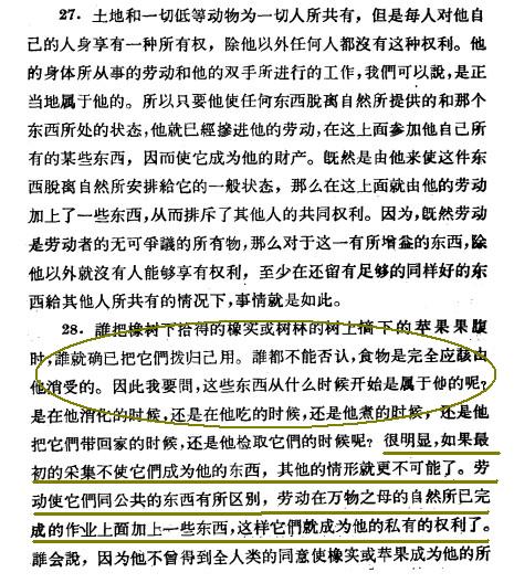 2、对自然之物必须经过劳动才能拥有,这代表人类公平正义的一个起点,马氏不以这个起点作为判断是非的凭据,那他还有什么东西可依,从而在忽悠全世界?其次,像“必要、剩余”,“劳资不等价交换”之类,他推导的“无偿占有”等道义问题不根据劳动产权又根据什么?