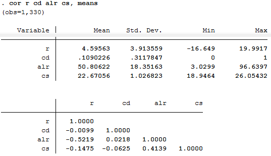 本人用stata 对面板数据做了一个相关性分析,但是结果有些看不懂,求大神指点