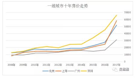 2008年时,广州房价与北上深还在同一条起跑线,1万元左右,而到了十年后,当北上深房价全部突破5万时,广州房价却还在3万左右徘徊。