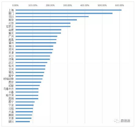 这是35个大中城市过去十年的房价涨幅排行榜: