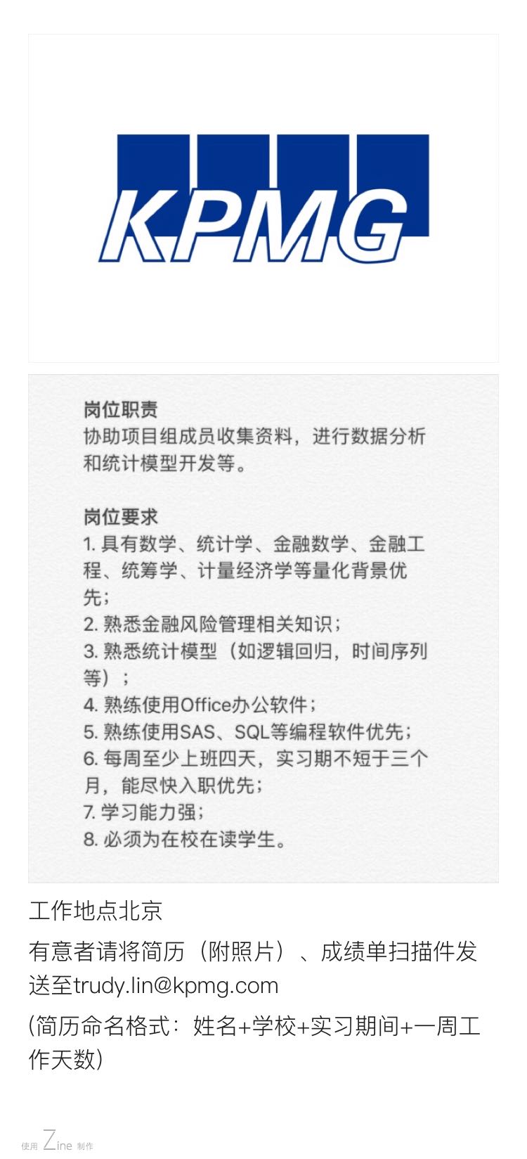毕马威金融风险管理-北京所招实习生啦!