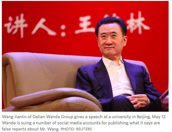 According to a copy of one lawsuit reviewed by The Wall Street Journal, Wanda is taking issue with claims that Mr. Wang was detained by police at Tianjin’s airport last month and barred from leaving China.