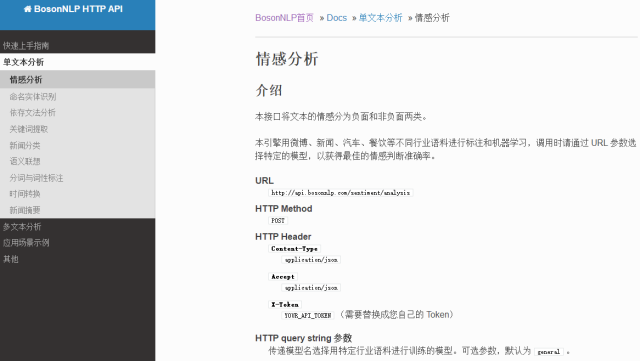 3,、接口用的是玻森,需要注册。玻森情感分析免费500条/天。