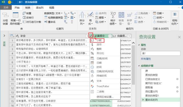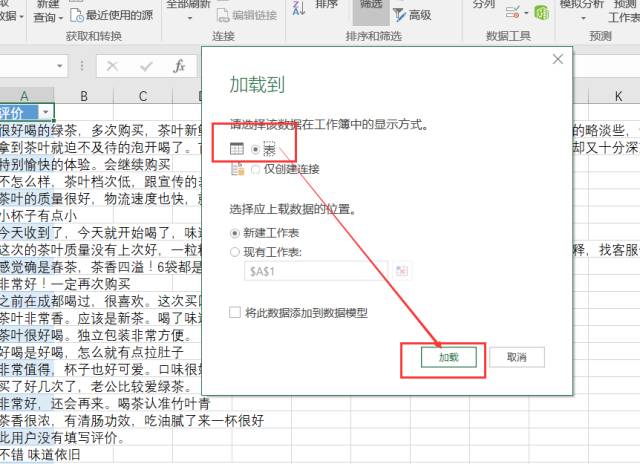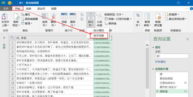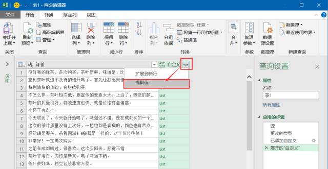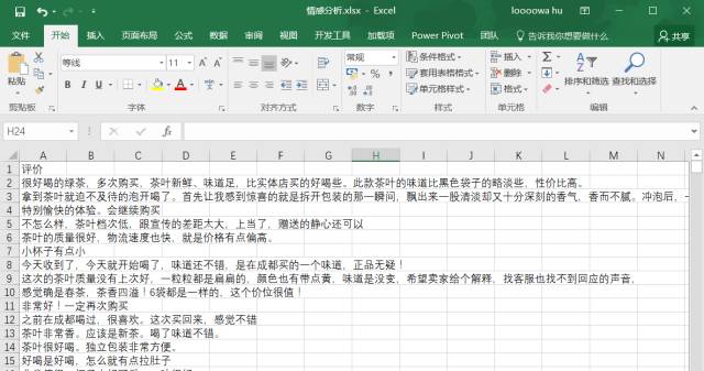 5、打开用零一工具箱下载茶叶评价的Excel→删除其他列,仅保存“评价”列
