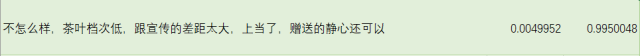 此条评价的正面得分是0.0049,负面得分是0.9950,是负面评价,符合。