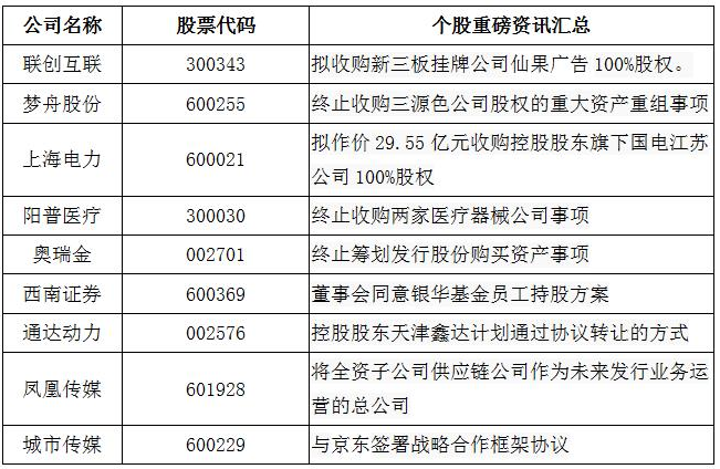 个股重磅资讯汇总