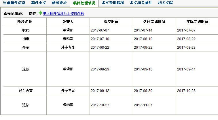 465299382 发表于 2017-12-29 11:37 能贴出来你的最新进度表不,你的文章录用没呢?我的论文12月17日外审结束了,编辑部老师说还要复审,不过 ...