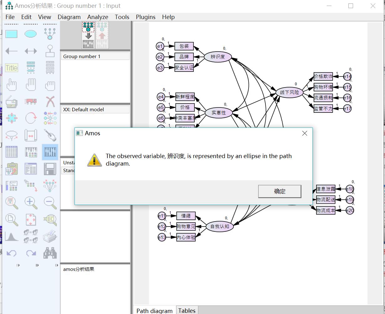 18829069828 发表于 2017-9-8 16:24 你把观测变量加进潜变量中了,系统会报错,椭圆之中的变量都是不可测得的。仔细检查一下,全部路径图被挡住 ...