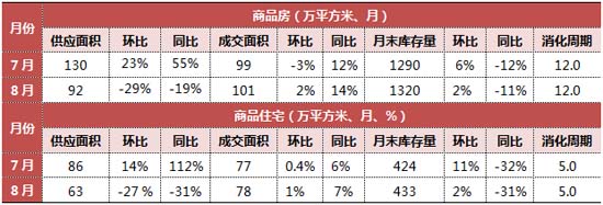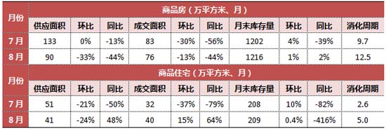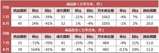 成交:9月成交将回升,商品住宅预计成交50万㎡左右。
