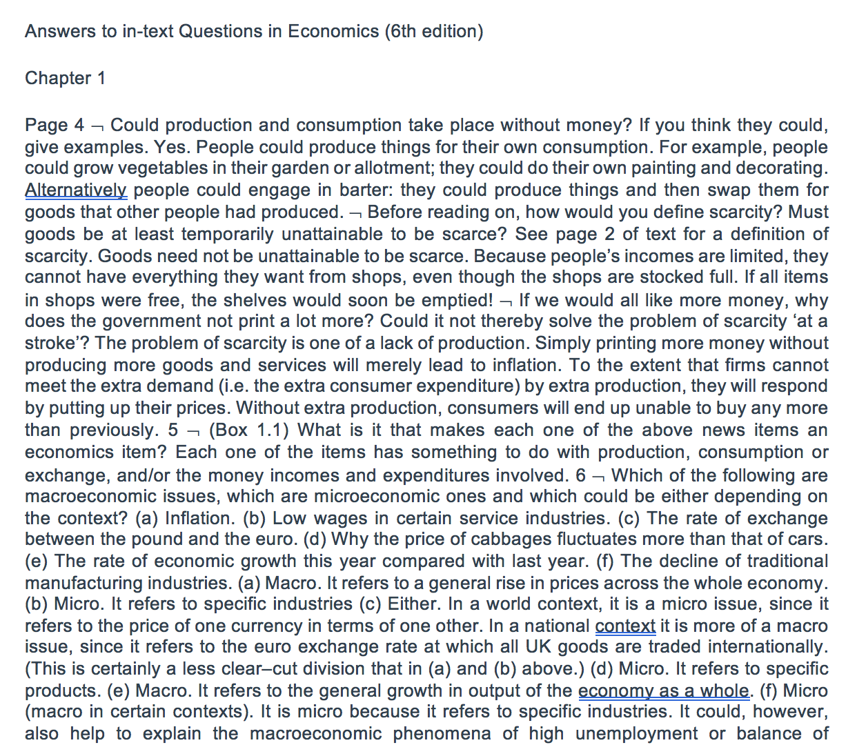微观经济学课后习题答案英文 Answers to in-text Questions in Economics (6e) Sloman