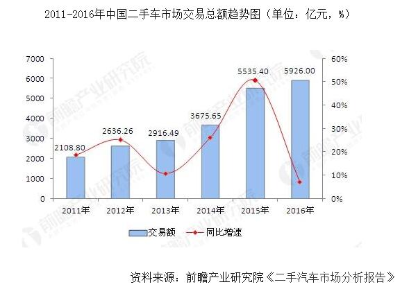 2011-2016年,我国二手车市场持续扩张,各项指标屡创新高。前瞻产业研究院《中国