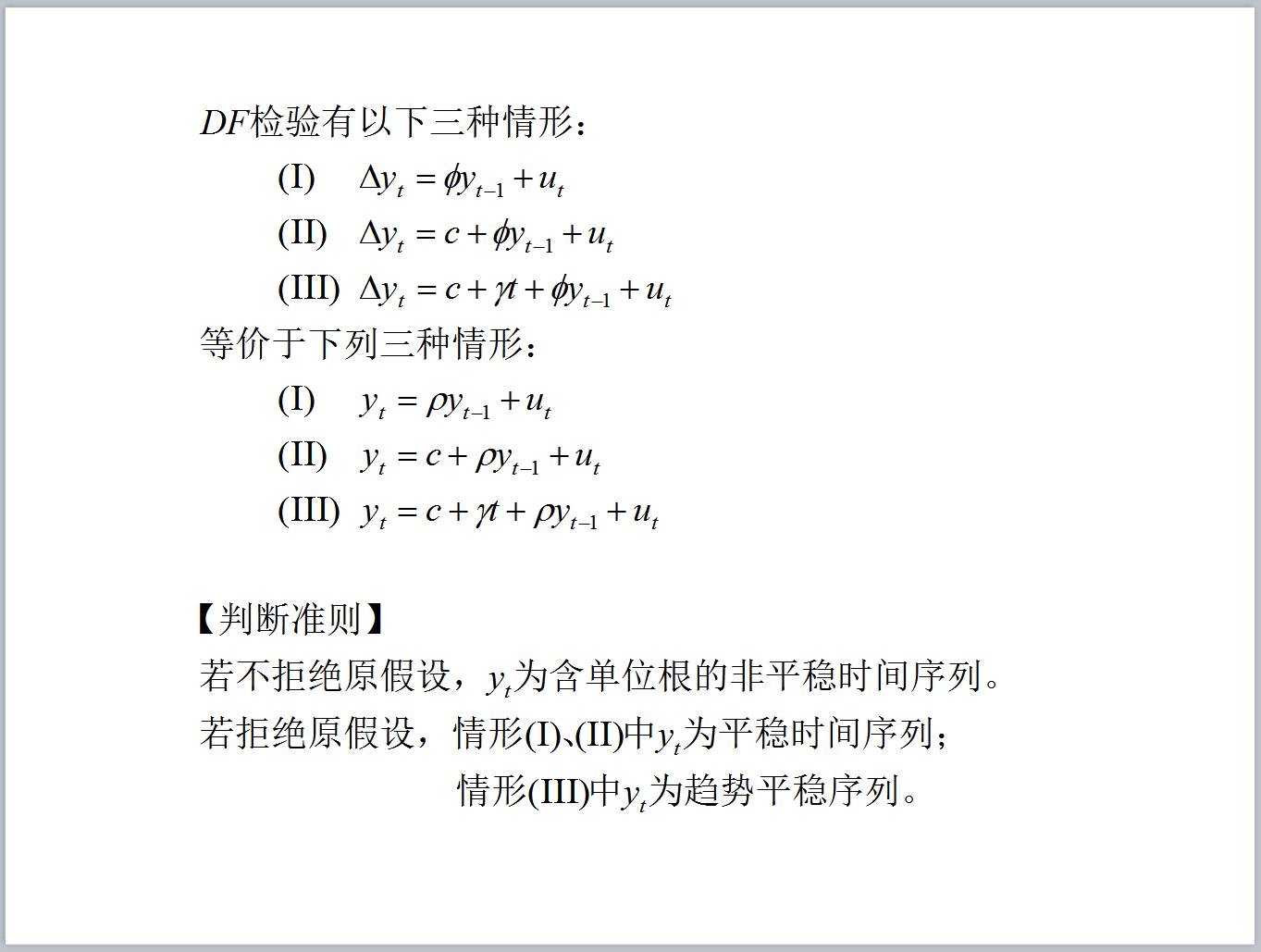 【问题】由于DF检验或ADF检验有三种形式:无截距项和时间趋势项、仅含截距项、含截距项和时间趋势项,