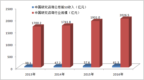 2013-2016年中国研究咨询行业收入规模及集中度情况