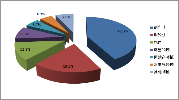 应用领域方面,研究咨询业在国内最大的市场是制造业企业,2016年制造业领域咨询占全行业营业收入比约42.3%,其中最直接和重要的企业客户是装备制造业、金属及非金属加工、石油化工、制药、纺织服装、食品加工业等。