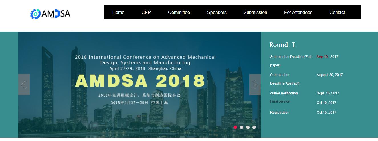 2018年先进机械设计,系统与制造国际会议(AMDSM2018) ---Ei Compendex&Scopus-Call forpapers