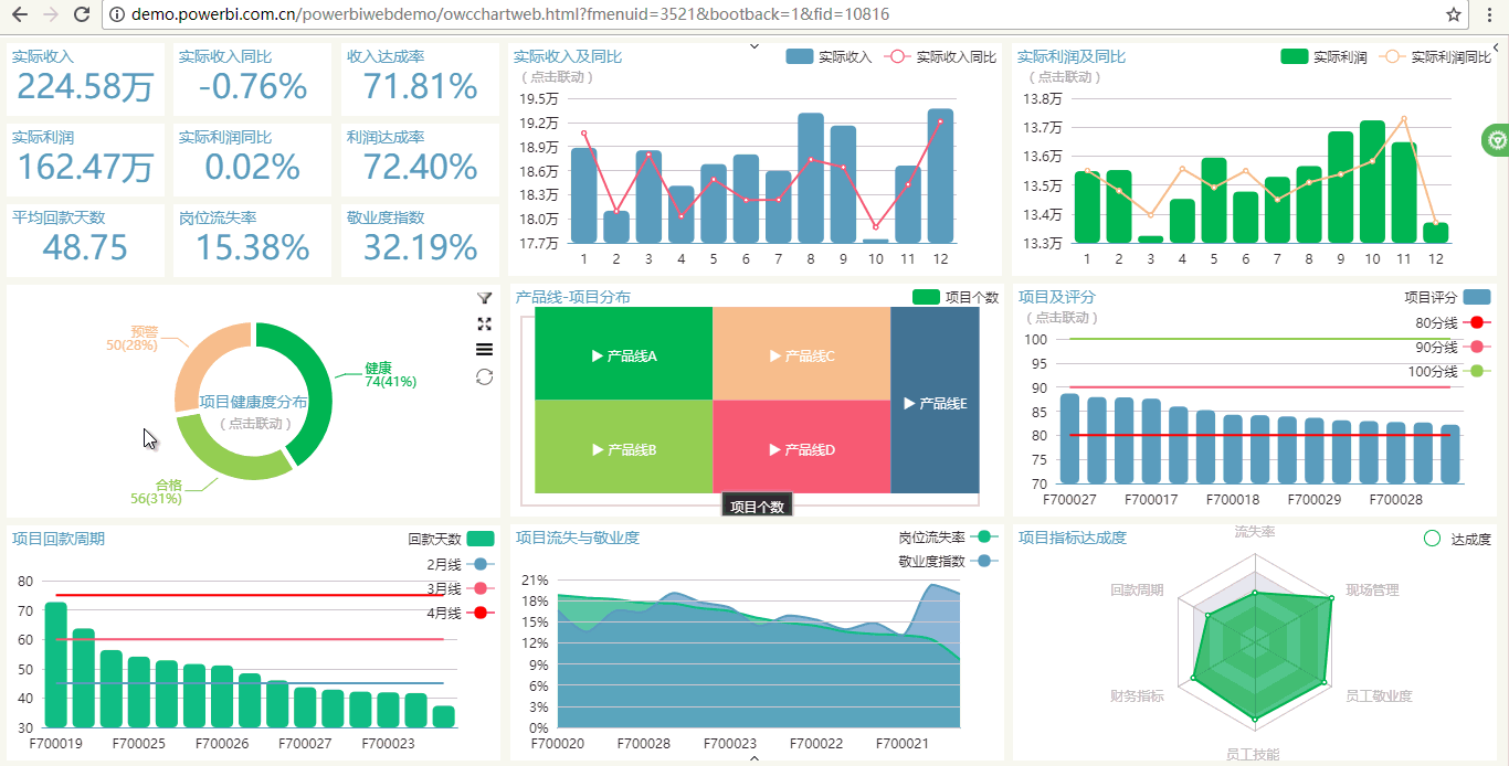 1、通过BI数字仪表盘可快速所有项目的关键指标;
