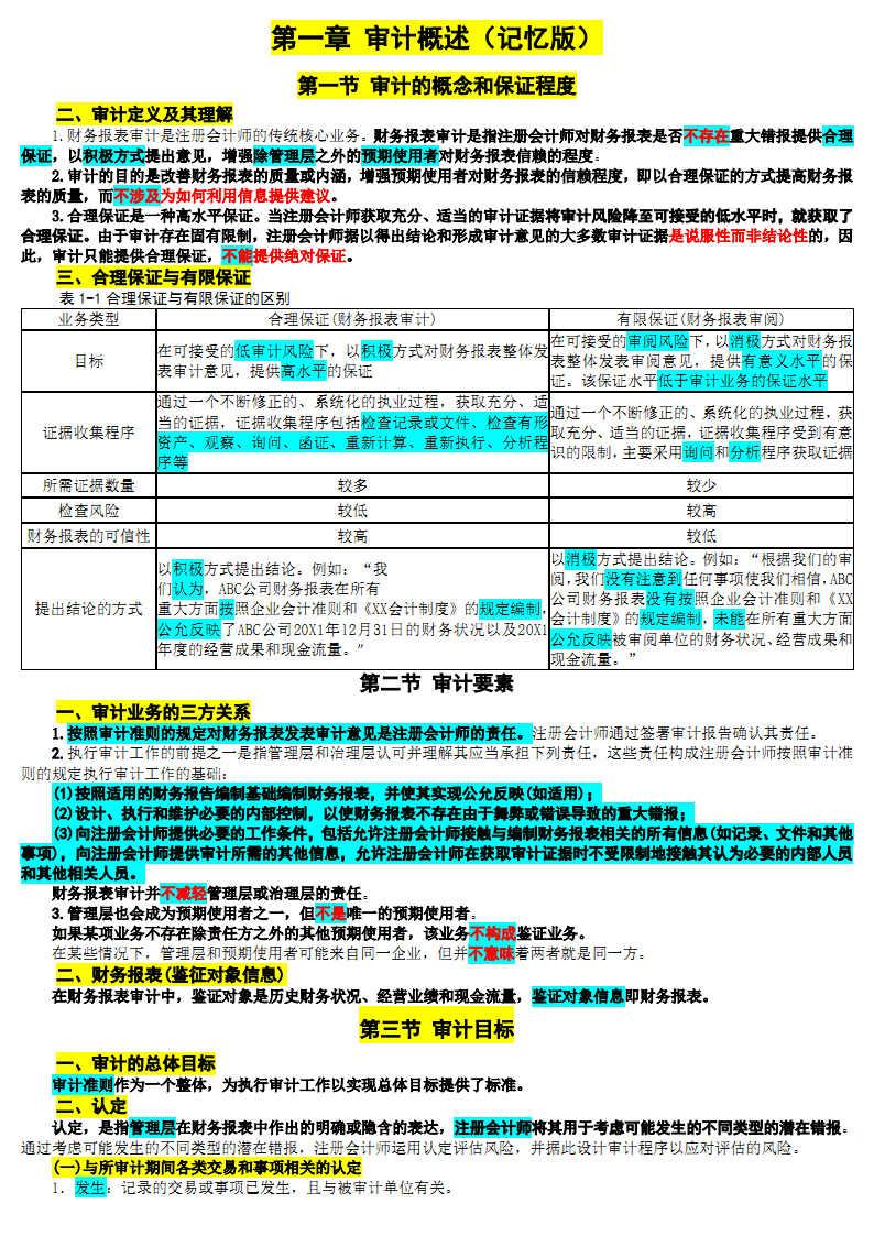 2017年注册会计师《审计》背诵版