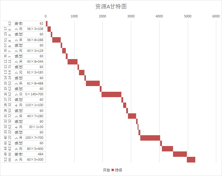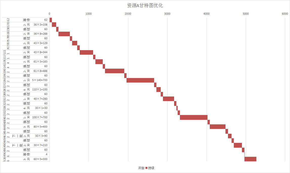 图6-111 第一批140个资源A的甘特图优化