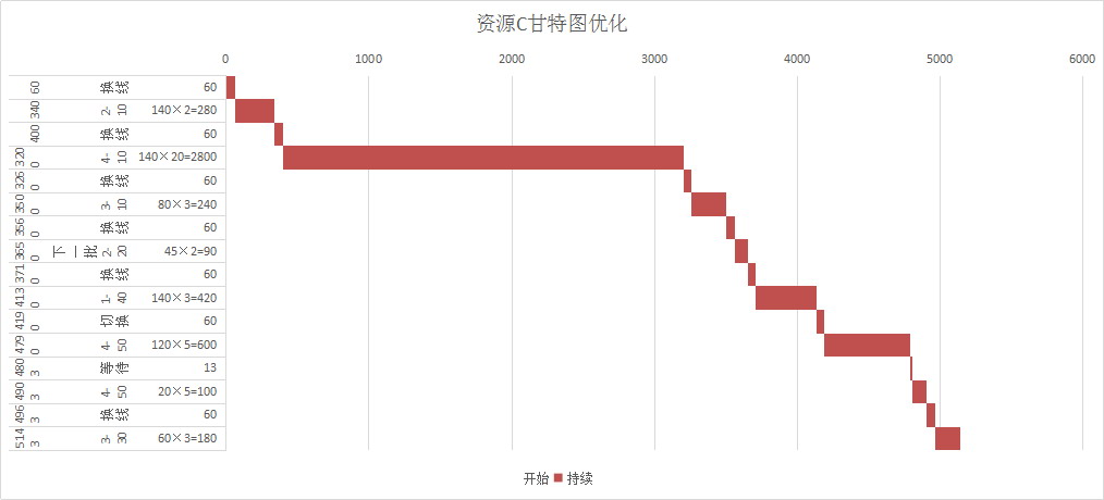 图6-110 第一批140个资源C的甘特图优化