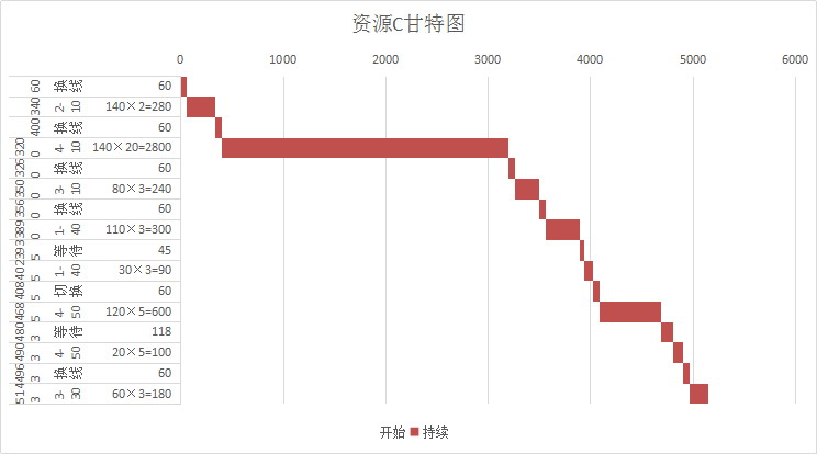 按照资源C优化的数据,更新资源C的甘特图(如图6-110所示)。
