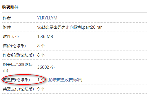 2、你的20个分卷,每下载一个分卷,另外还要支付流量费(1个论坛币),若20个分卷全部下载,就要支付20个论坛币(流量费)! 请看截图: