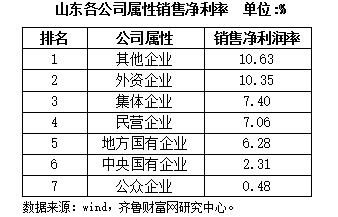 齐鲁财富网根据wind数据整理发现,截至9月20日,沪深两市上市公司家数达到3385,其中山东达190家,占比为5.61%。从销售净利率指标分析发现,山东为6.43%,低于全国水平(9.92%)。从板块来看,山东创业板最高,达到11.10%;其次是中小企业板,为7.49%;主板仅为6.10%,低于山东省水平。从公司属性角度划分发现,国有企业和公众企业均低于全省数值,说明对应属性的上市公司在销售收入的收益水平有限。