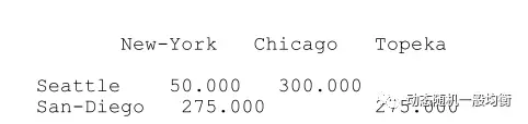 当 GAMS 程序结束时,检查文件,如果一切正常的话,那么最优化运输方案将显示如下: