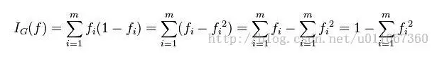 假设y的可能取值为{1, 2,..., m},令fi是样本被赋予i的概率,则基尼指数可以通过如下计算: