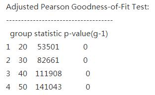 8、上图的分布拟合优度检验,为什么分成了四行?P<0.05表示拒绝服从某一的原假设,是吗?