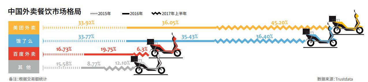 从2016年下半年起,百度糯米的市场份额持续下滑,与猫眼电影、微影时代差距越来越大,在三季度被阿里的淘票票赶超。易观数据显示,2017年一季度,百度糯米的市场占比已经不到13.8%。