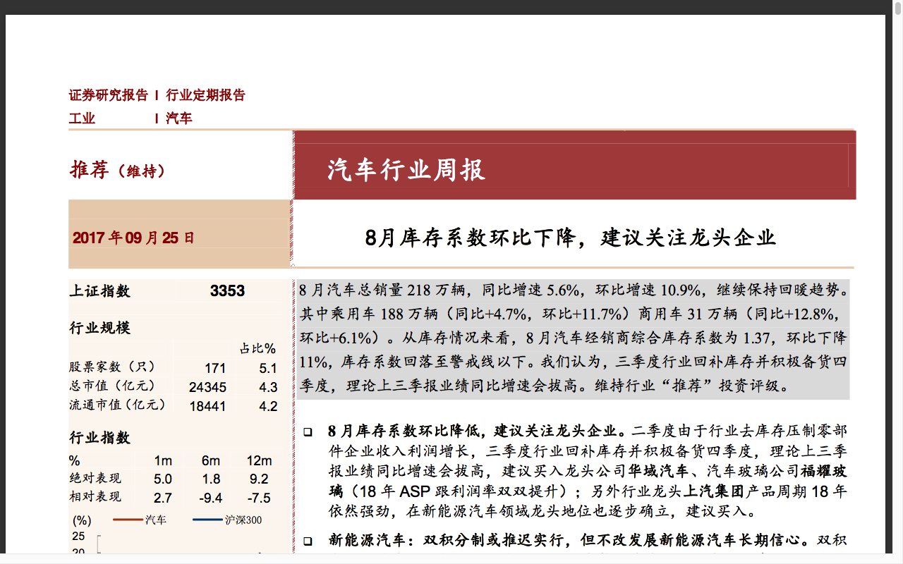 20170925-招商证券-招商证券汽车行业周报:8月库存系数环比下降,建议关注龙头企业.pdf