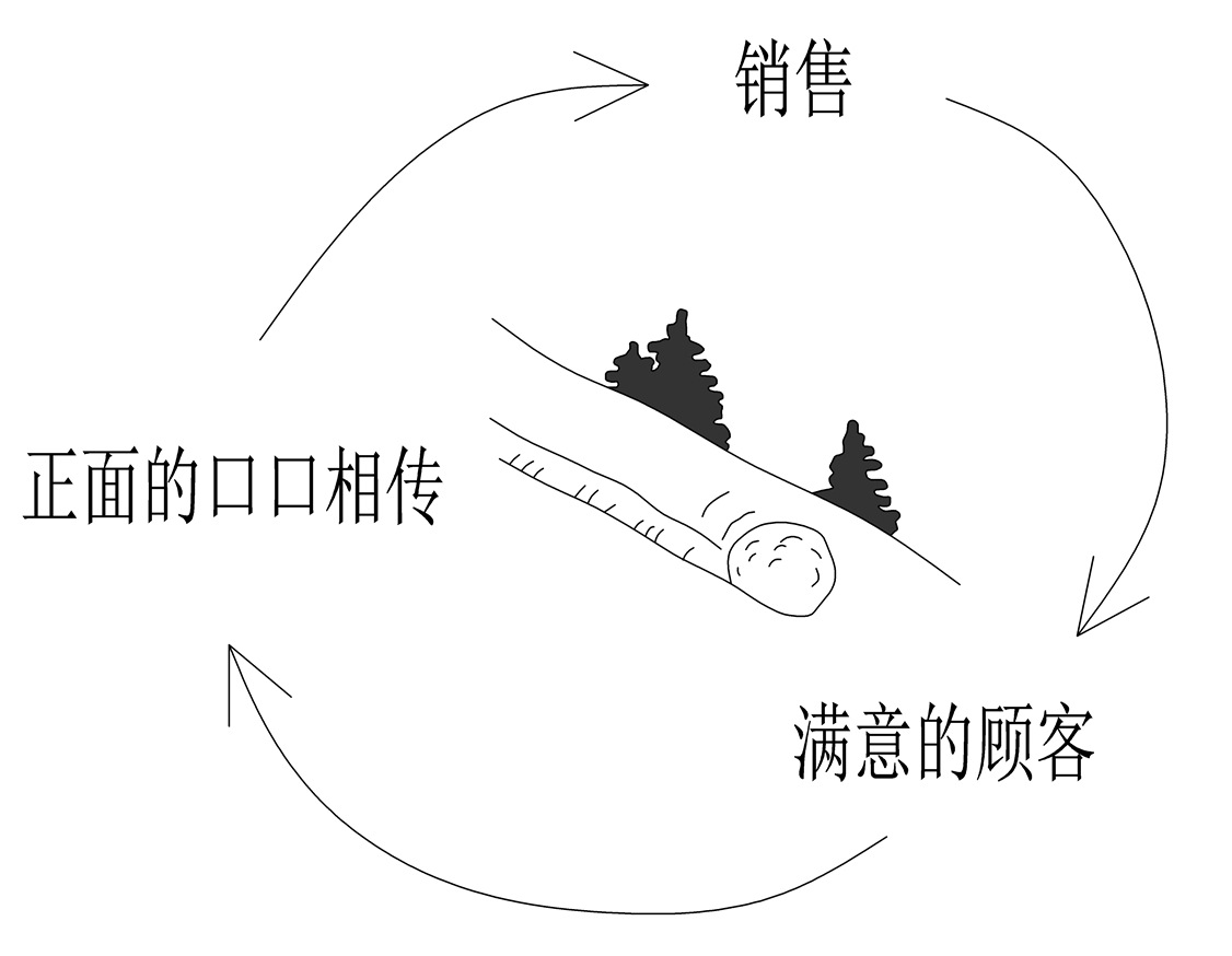 下面就是口口相传增加销售和满意度的正反馈示意图(如图7-1所示):