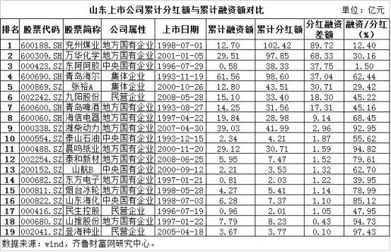 山东19家上市公司分红大于融资